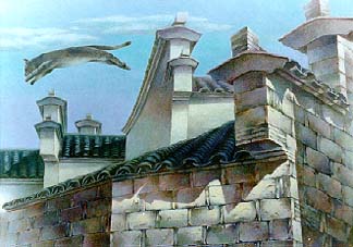Das Bild "Die springende Katze" stammt von dem chinesischen Maler Yitao Zhou (geb. 1954) Eine spannende Kooperation der Musiker GinNger SparkelzZz (Jennifer L. Carlton aus Chicago), Archie Bowen (von der Band "Itchiecat" aus Irgendwo in Oklahoma), DaveDJ (aus Irgendwo in der Schweiz, Mastering) und mir. Alle Beteiligten sind in verschiedenen Musikrichtungen zuhause, GinNger im Techno, Itchiecat im Country, DaveDJ im House und ich (na, Ihr wisst schon). Aber alle treiben sich in verschiedenen Stilen herum und sind für musikalische Experimente aufgeschlossen. - Herausgekommen bei diesem Experiment ist ein Rhythm & Blues Song, in den sich eine tieffliegende Katze und ein "mad vibraphonist" - wie Joe Dicarlo meint - verirrt hat. Harmonisch wird an den passenden Stellen "The Pusher" von Steppenwolf zitiert; ansonsten wird sich wieder an kein bekanntes Bluesschema gehalten, und das Wah-Pedal wird in den Gitarrensoli heftig betätigt. |